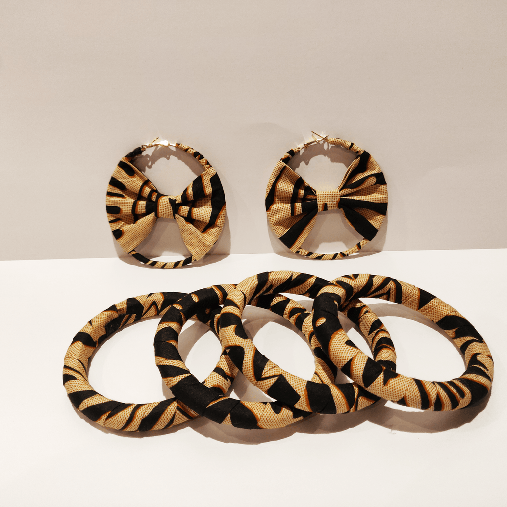 Show-off your wrist with these gorgeous and colorful handcrafted bracelets in African fabric, with assorted earrings. Suitable for any outfit, any occasion and day or night.
