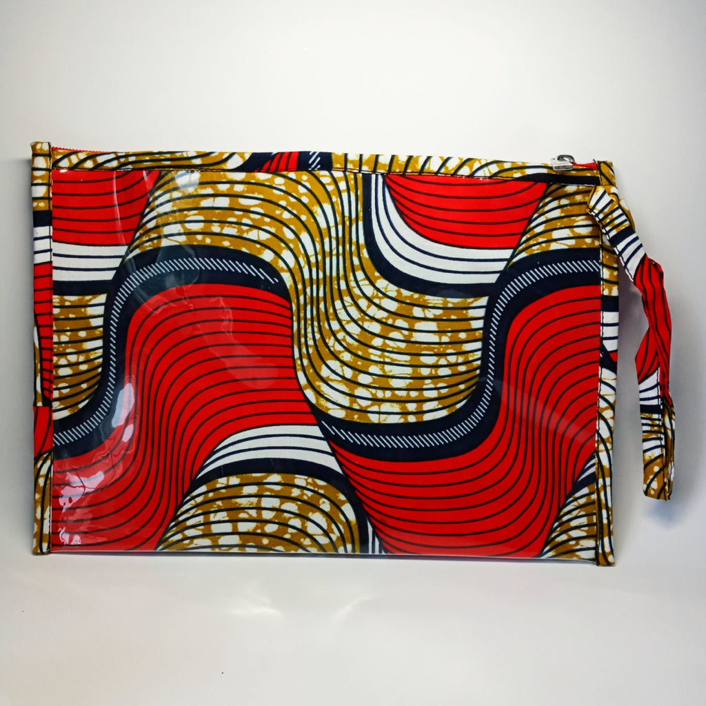 Épatez-les en berçant cette pochette à emporter, confectionnée en tissu africain et recouverte de PVC. Le matériau en PVC le rend facile à transporter les jours de mauvais temps