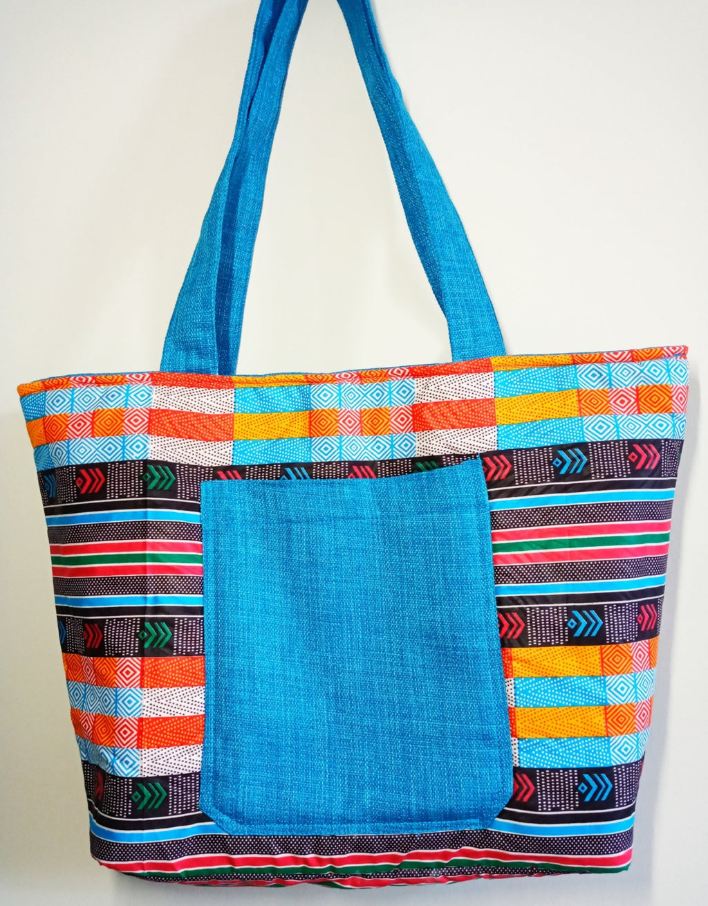 Basculez ce sac fourre-tout réversible lumineux, beau et élégant en tissu africain. Adapté à toutes les occasions, ce sac séduit par son grand volume qui peut facilement contenir un ordinateur portable. Avec un design réversible, ce sac spacieux offre des options de style doubles à coordonner avec votre tenue.