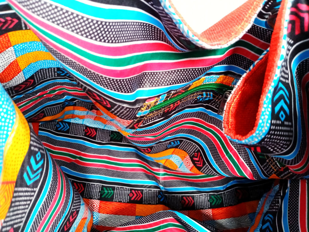 Basculez ce sac fourre-tout artisanal lumineux, beau et élégant en tissu de jute africain. Convient à toutes les occasions. Peut être facilement stocké.